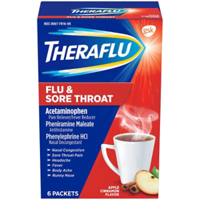 Theraflu Pain Reliever Fever Reducer Flu Sore Throat Apple Cinnamon Flavor 6 Count Safeway